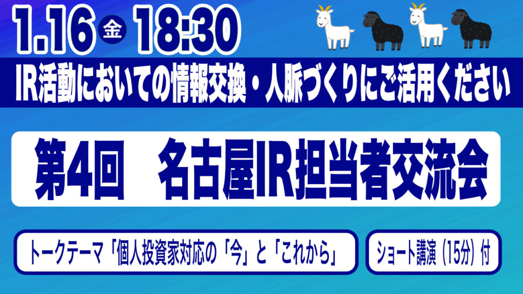 📅 第4回 名古屋IR担当者交流会 開催のお知らせ